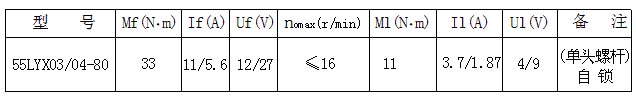 55LYX03/04-80蝸輪減速稀土永磁直流力矩電動機具有體積小,轉矩大,低轉速,運轉平穩,控制簡便等特點,廣泛應用于各種機械設備和自動控制系統中作驅動元件。 技術參數: