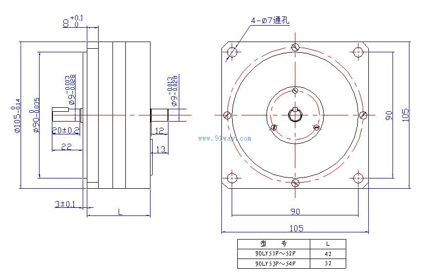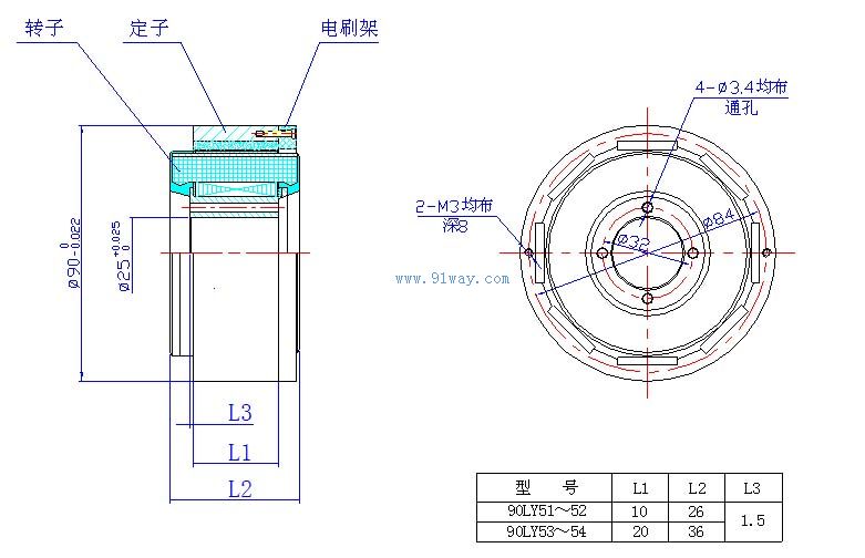 90LY系列永磁直流力矩電動機外形及安裝尺寸: