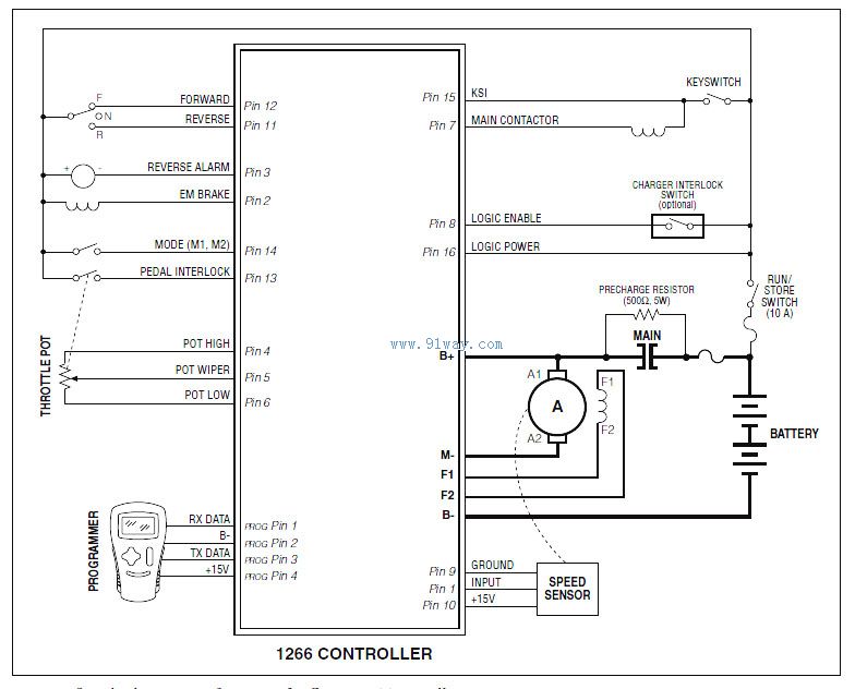 1266型他勵電機速度控制器額定電壓:48V,額定電流:275A 適用范圍:Curtis 1266 SepEx®控制器被設計用于雙人高爾夫球/多功能車輛。