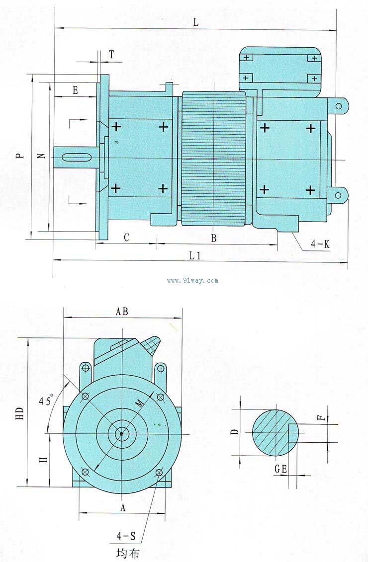 本系列電機的安裝尺寸除了兩底腳孔間軸向尺寸“B”之外,均符合國際標(biāo)準(zhǔn)IEC72