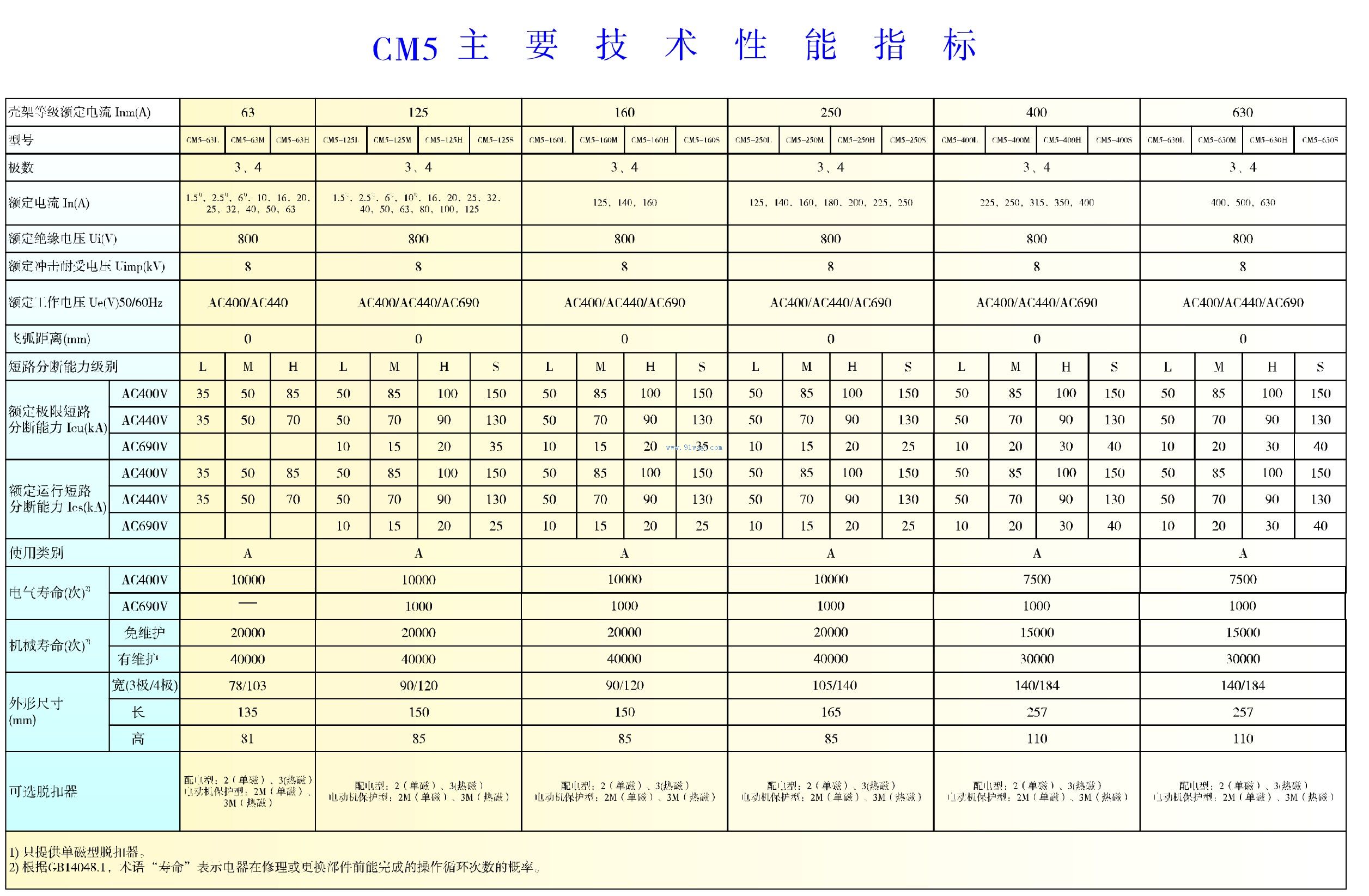 CM5系列塑殼斷路器為熱磁可調型斷路器有63A、125A、160A、250A、400A、630A六個殼架,電流從1.5 A~630A。