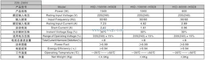 | 產品名稱: | HID系列電子鎮流器 | |||||