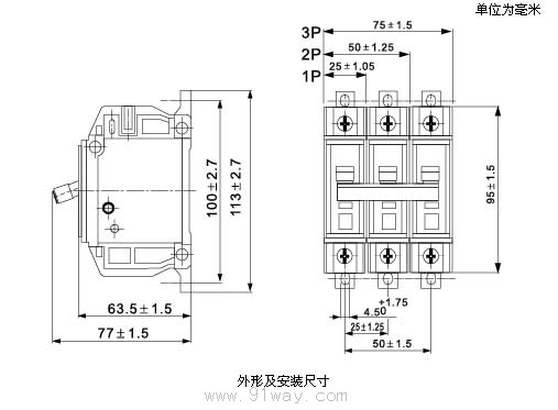 六、DZ12系列塑料外殼式斷路器外形及安裝尺寸