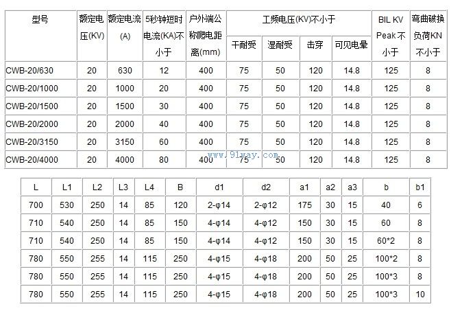 CWB-20/630-4000A戶內外銅導體高壓穿墻套管