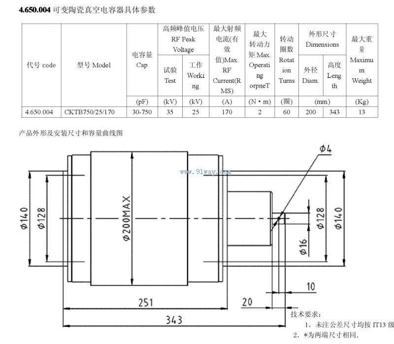CKTB750/25/170型可變陶瓷真空電容器
