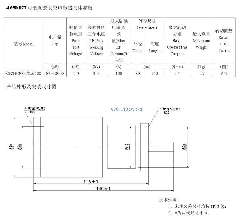 CKTB2000/3.5/100型可變陶瓷真空電容器