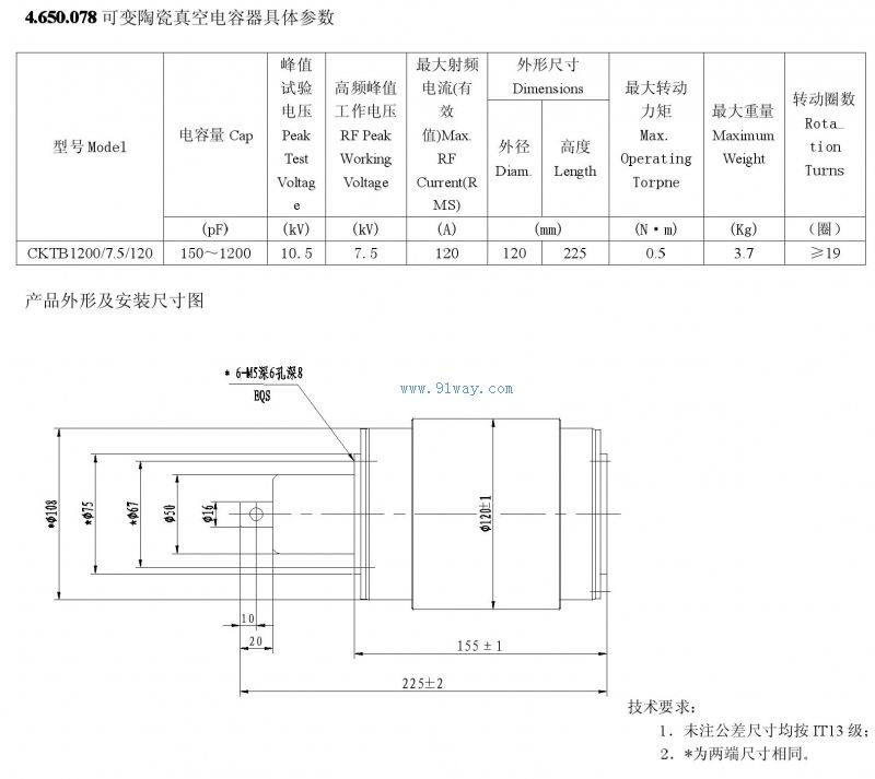 CKTB1200/7.5/120型可變陶瓷真空電容器