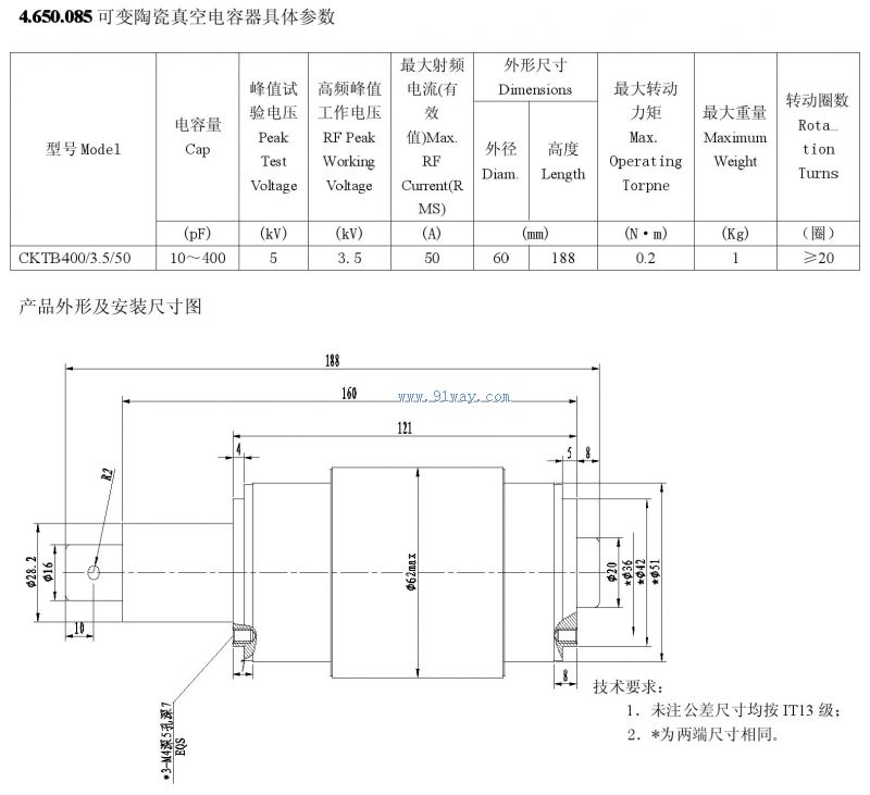 CKTB400/3.5/50型可變陶瓷真空電容器