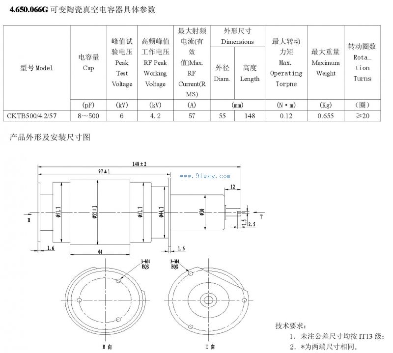 CKTB500/4.2/57型可變陶瓷真空電容器