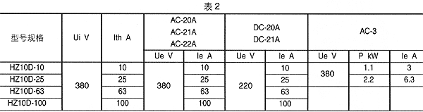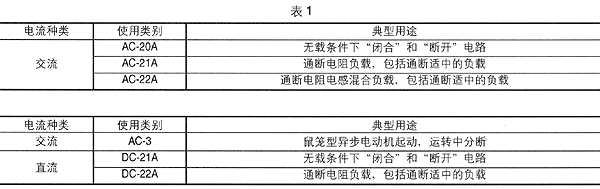 分類表1給出了組合開關(guān)的主要使用類別代號(hào)。