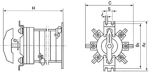 HZ10D系列組合開關(guān)表4給出了圖1 ~ 圖3中的各相關(guān)尺寸