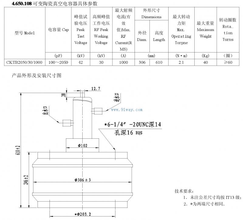 CKTBS2050/28/30/1000水冷型可變陶瓷真空電容器