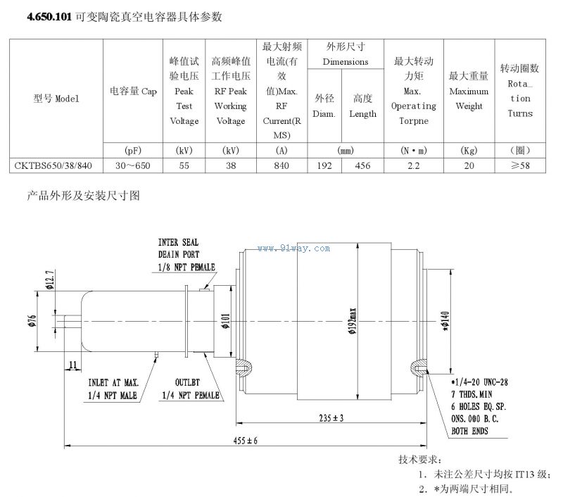 CKTBS650/38/840型可變陶瓷真空電容器(水冷)