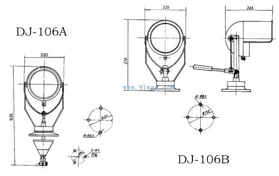 | 產(chǎn)品名稱: | DH-106A,106B船用搜索燈 | |||||