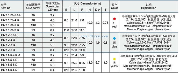 HNY-D系列尼龍絕緣銅套鉤形端子