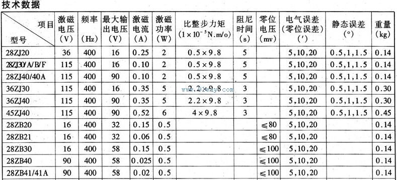 28ZB20,28ZB21,28ZB30,28ZB40,28ZB41,28ZB41A系列自整角機