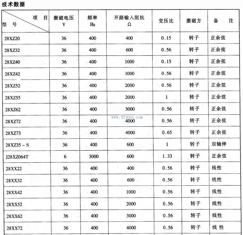 28XX22,28XX32,28XX42,28XX52,28XX62,28XX72系列線性旋轉變壓器