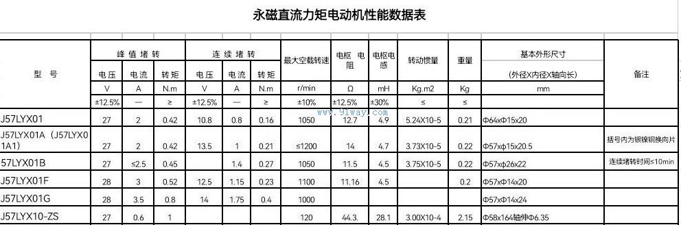 J57LYX01型永磁直流力矩電機技術參數