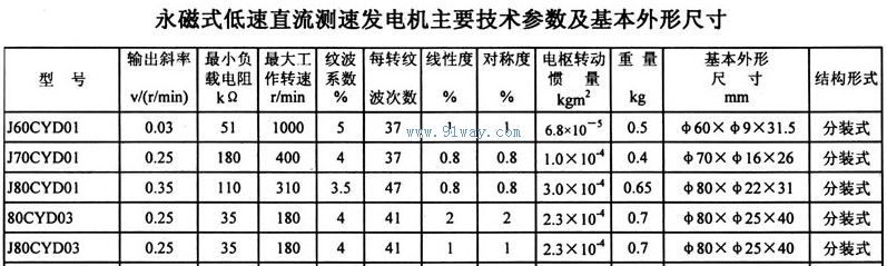 80CYD03,J80CYD01,J80CYD03系列直流測速發電機技術參數