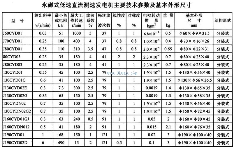 J190CYD01,J190CYD02D永磁式低速直流測速發電機