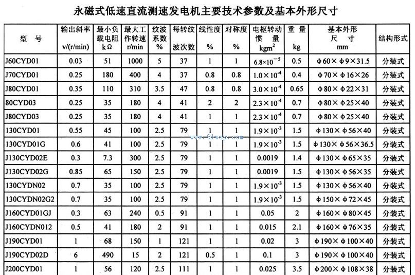 J200CYD01型永磁式低速直流測速發電機