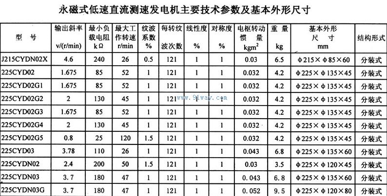 225CYD系列永磁式低速直流測速發電機