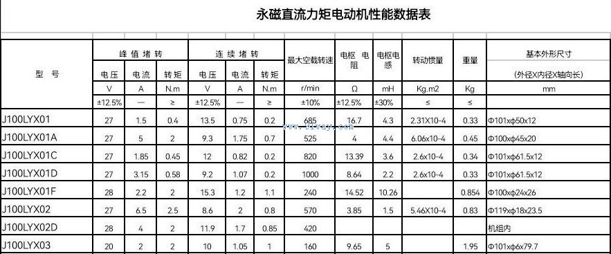J100LYX01,02,03型永磁直流力矩電動(dòng)機(jī)