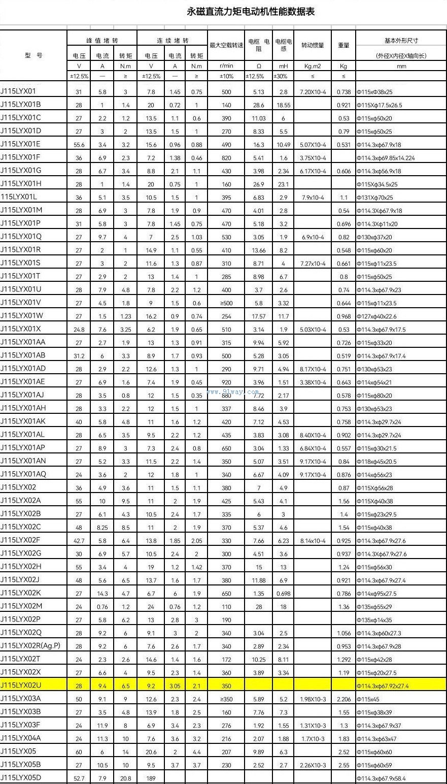 J115LYX01,02,05型永磁直流力矩電動機