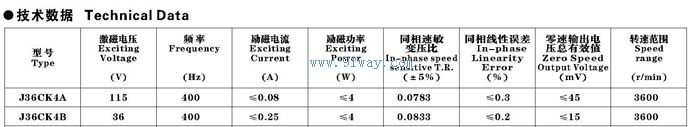 J36CK4A,J36CK4B型交流測速發電機