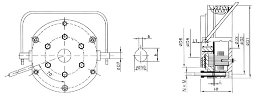 安裝后必須旋出空心螺栓鎖緊在電機(jī)后端蓋或法蘭盤上。