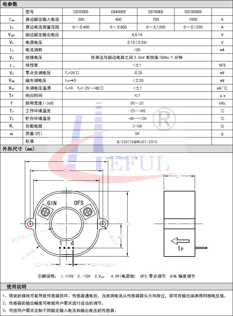 CS1000ED系列開環霍爾電流傳感器
