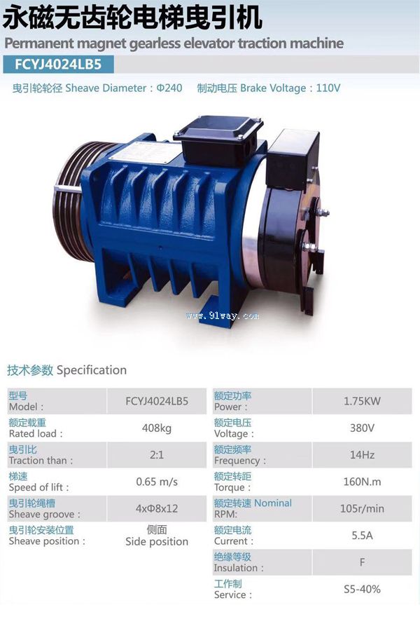 FCYJ4024LB5型永磁無齒輪電梯曳引機