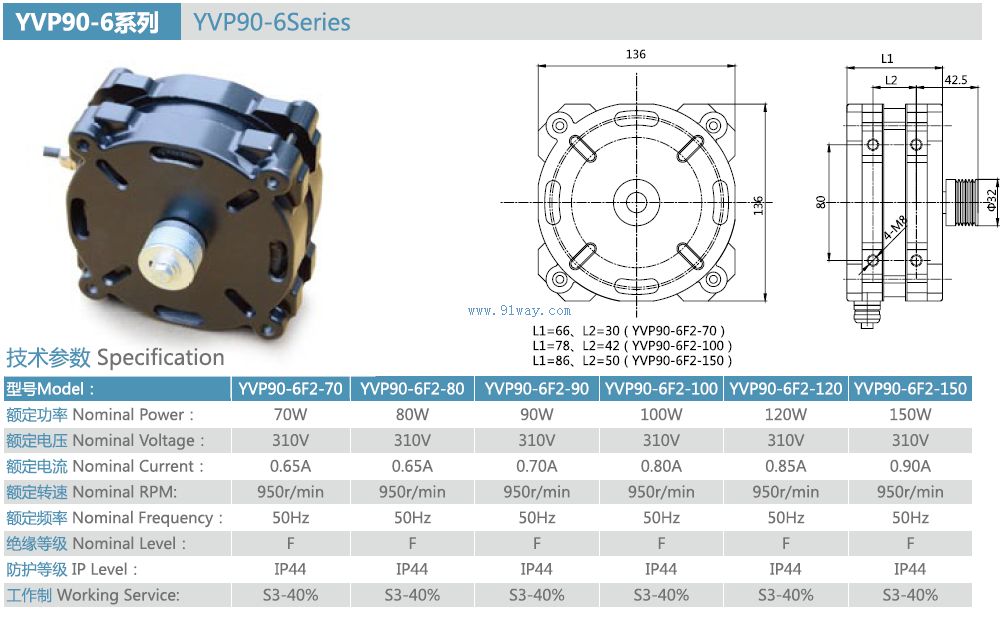YVP90-6F2型電梯用三相異步電動機