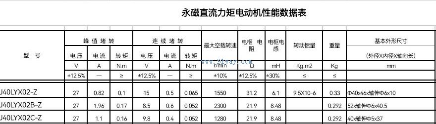 J40LYX02-Z型永磁式直流力矩電機