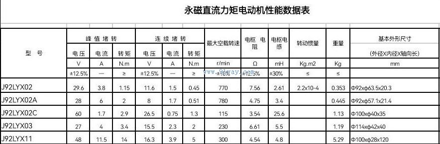 J92LYX02,J92LYX03型永磁直流力矩電動機J92LYX02,J92LYX02A,J92LYX02C,J92LYX03,J92LYX11