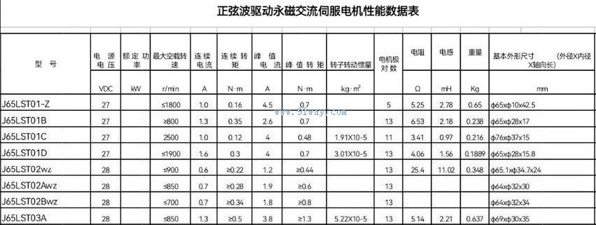 J65LST系列正弦波驅動永磁交流伺服電機J65LST01-Z,J65LST01B,01C,01D,J65LST02,J65LST02Awz,02Bwz,J65LST03A