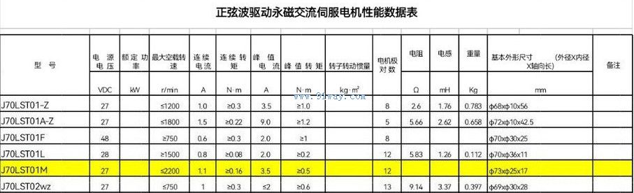 J70LST01型正弦波驅(qū)動永磁交流伺服電機