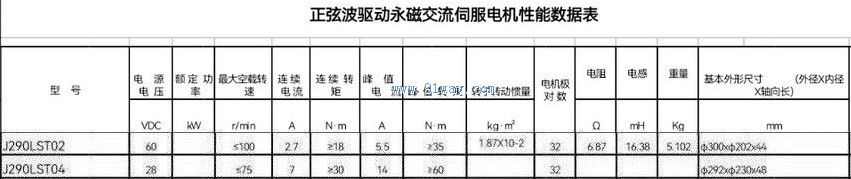 J290LST02,J290LST04系列正弦波驅動永磁交流伺服電機