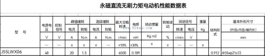 J55LWX06系列無刷直流力矩電動機