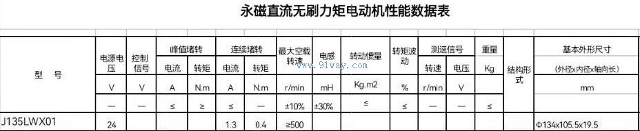 J135LWX01型永磁直流無刷力矩電動機