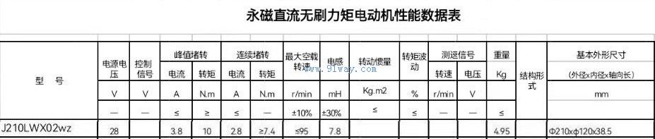 J210LWX02wz型無刷直流力矩電動機
