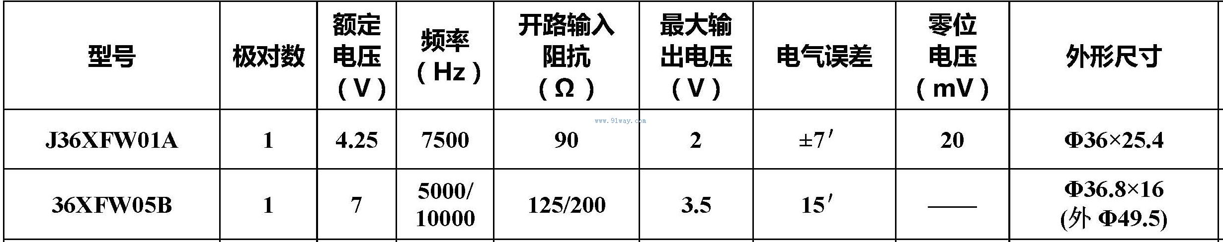 J36XFW01A,J36XFW05B型無刷旋轉變壓器