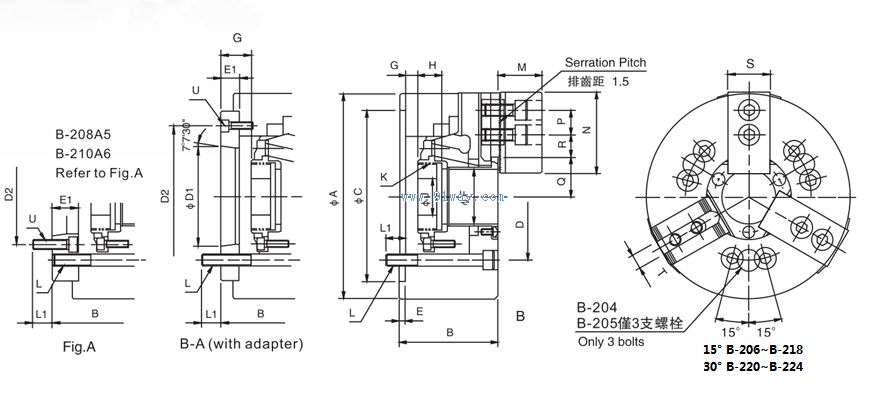| 產(chǎn)品名稱: | B系列中空動力夾頭(三爪高速中空型) | |||||