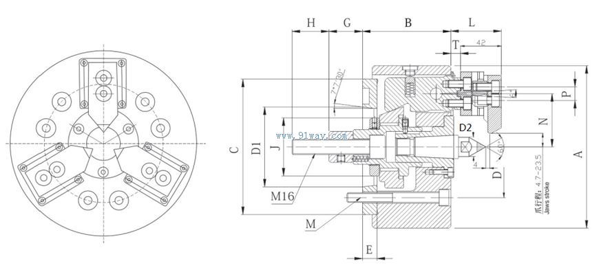 | 產品名稱: | FWD系列三爪補償型帶頂心動力卡盤 | |||||