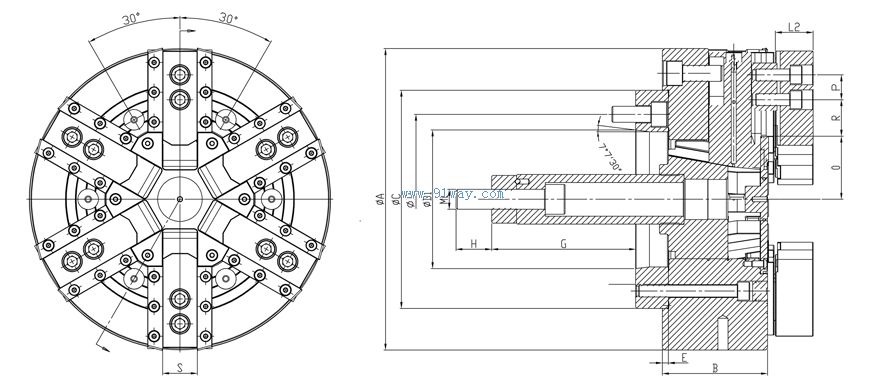 | 產(chǎn)品名稱: | TS-R系列六爪中實動力卡盤 | |||||