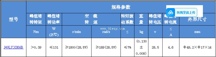 J49LYX006B型永磁式直流力矩電動機