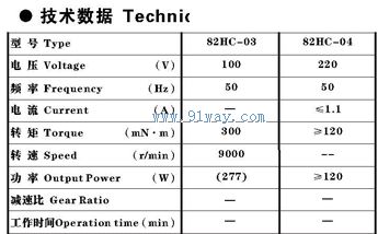 | 產(chǎn)品名稱: | 82HC-03,82HC-04型單相串勵(lì)電動(dòng)機(jī) | |||||