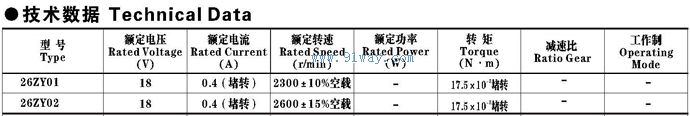 26ZY01,26ZY02型永磁直流電動機