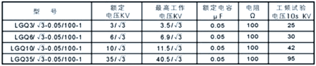 LGQ系列阻容過電壓吸收器主要技術參數見表: