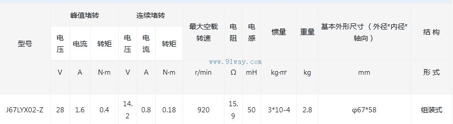 J67LYX02-Z型永磁式直流力矩電動機